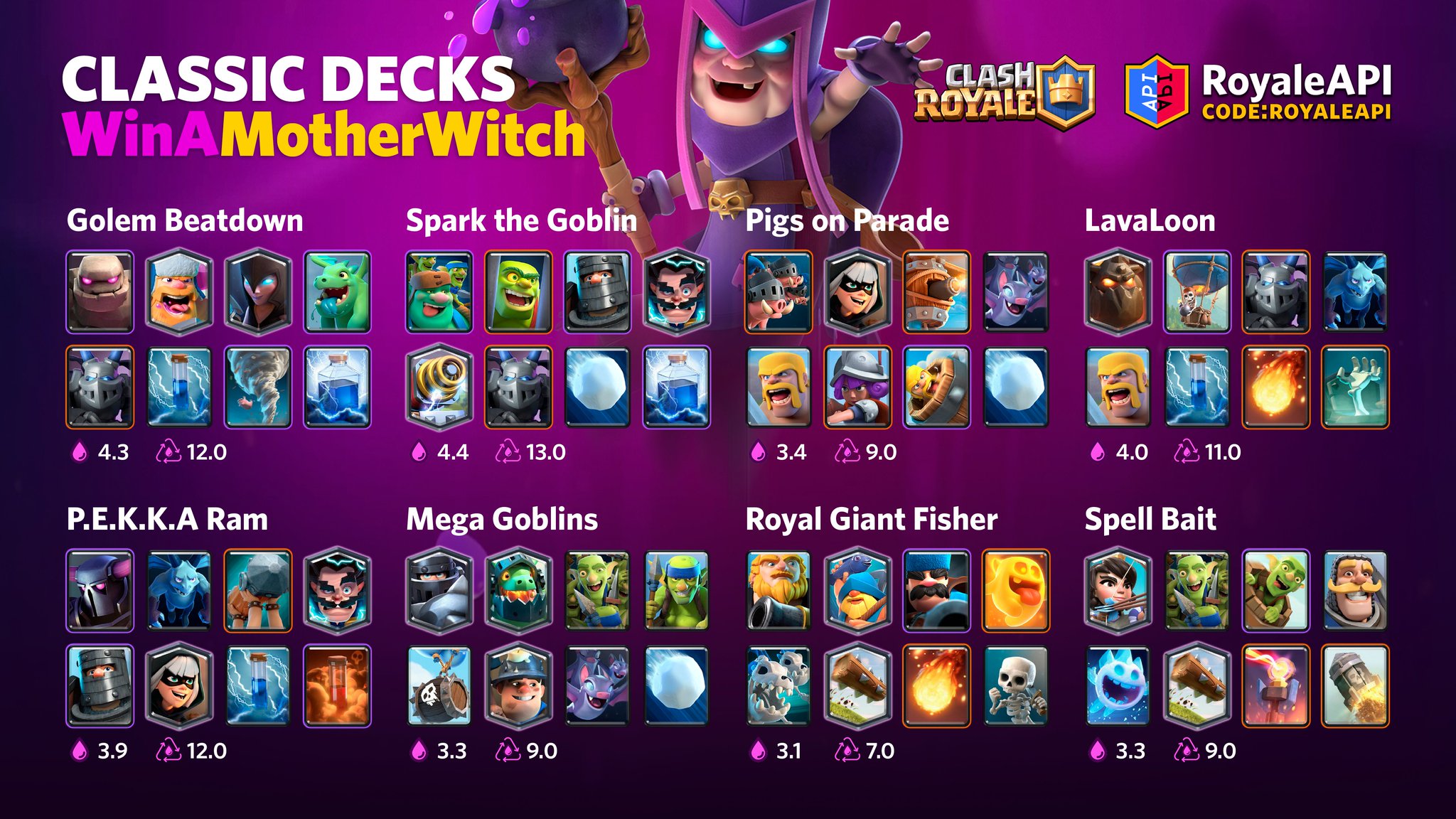 Royaleapi On Twitter Win A Mother Witch When You Complete The Classic Decks Challenge See How These Decks Perform In This 8 Deck Meta Https T Co Dz5gj0dh6f Clashroyale Https T Co F8szfecbp0